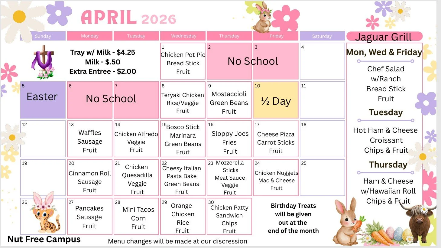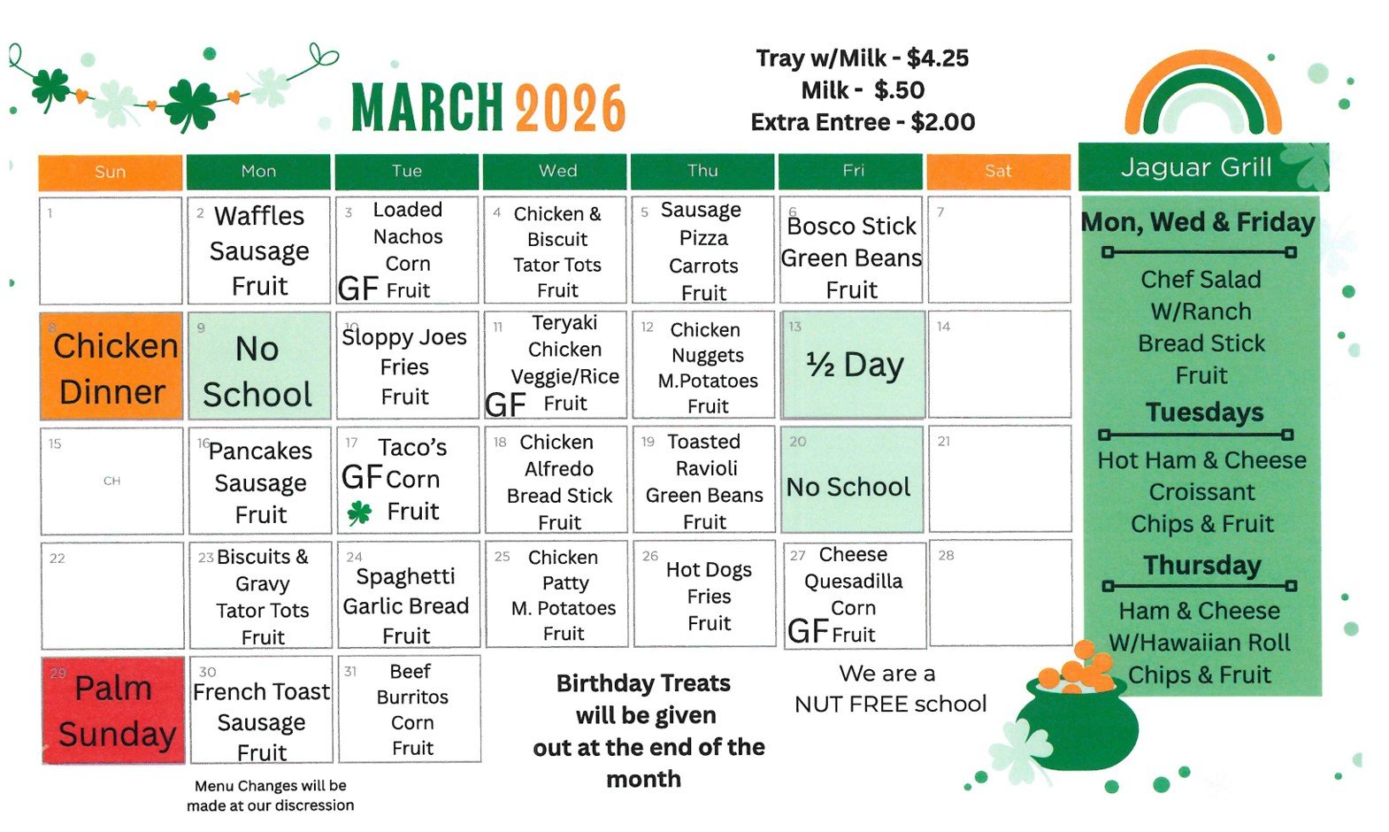 Jaguar Grill Menu